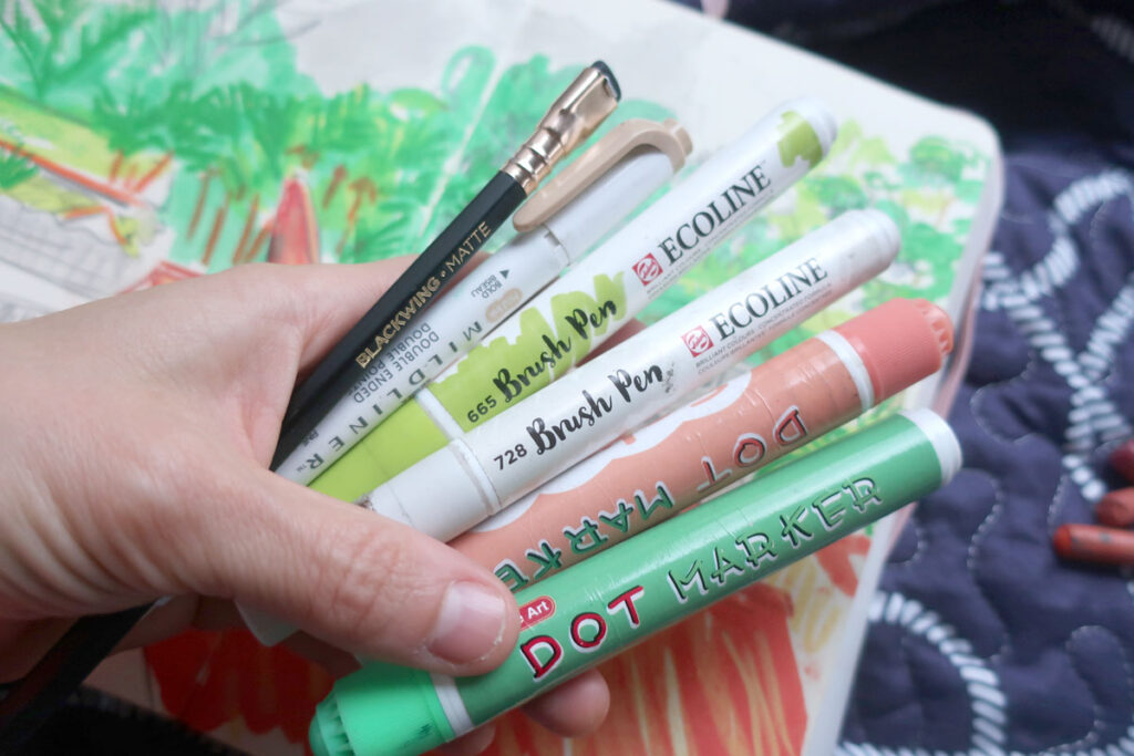- Une feuille, dans un carnet, dans ton agenda, sur un post it, dans un calepin, ce que tu as sous la main. Et si tu décides plus tard de te « greyer » d’un carnet pour ça (je t’encourage à le faire), tu pourras coller les pages ou les post its dedans après :)