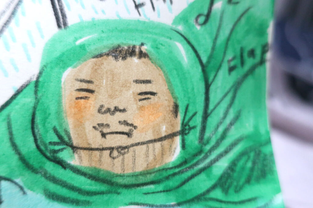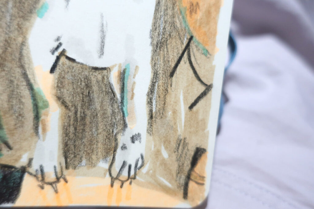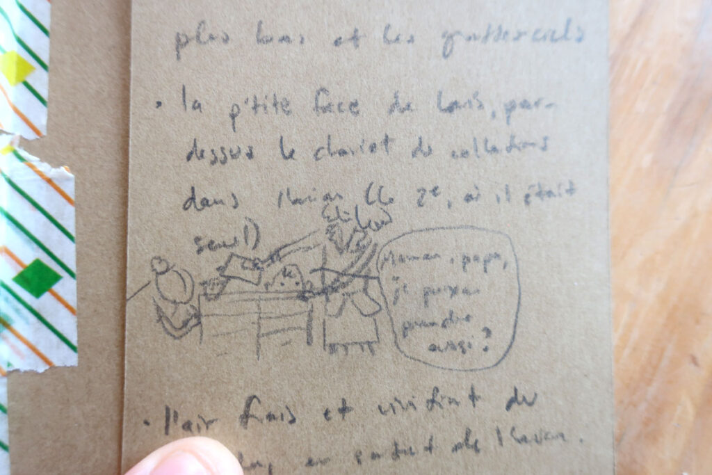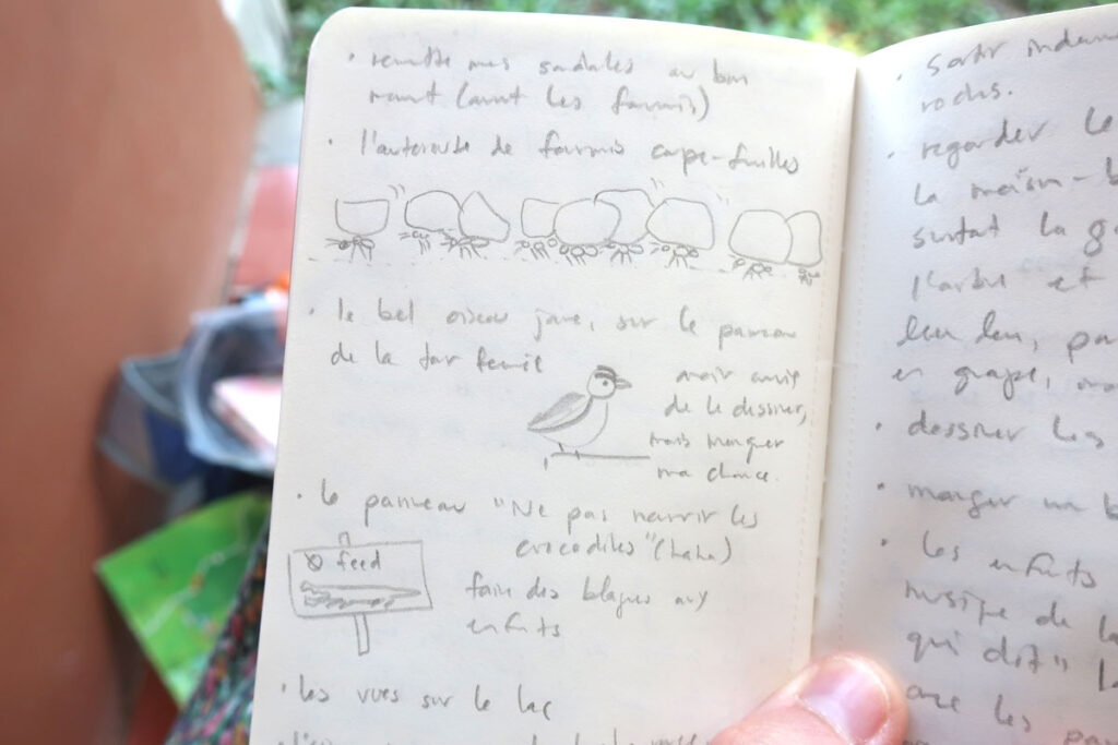 p.p.s (Et t’as le droit de l’accompagner d’un petit dessin, mais juste si t’es inspiré.e, faut pas que ça te bloques, concentre-toi sur noter un beau moment, c’est déjà un super commencement)