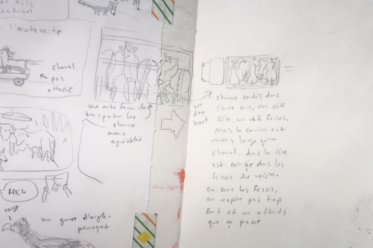 p.p.p.s Si tu aurais aimé plutôt un exercice de dessin, je t’invite à faire (ou re-faire) l’exercice des 3 couleurs, pour faire un dessin en couleurs limitées, comme j’ai fait beaucoup cette semaine. C’est un exercice toujour trippant à faire. Et tu peux le combiner à l’exercice en négatif et en aplats de couleurs.