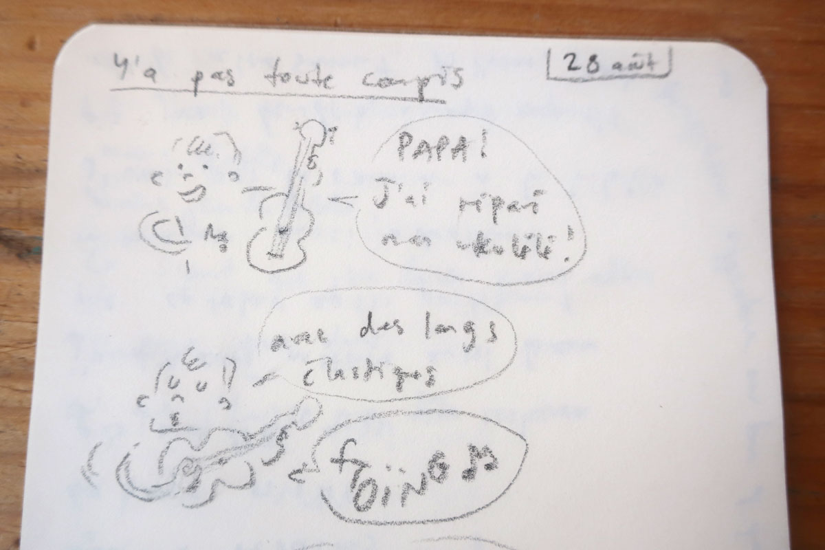 Ça faisait longtemps qu’il y avait pas eu de petite BD de famille ! Une nouvelle, notée rapido, dans le carnet d’écriture, parce que c’était juste trop drôle pour que… Read More →