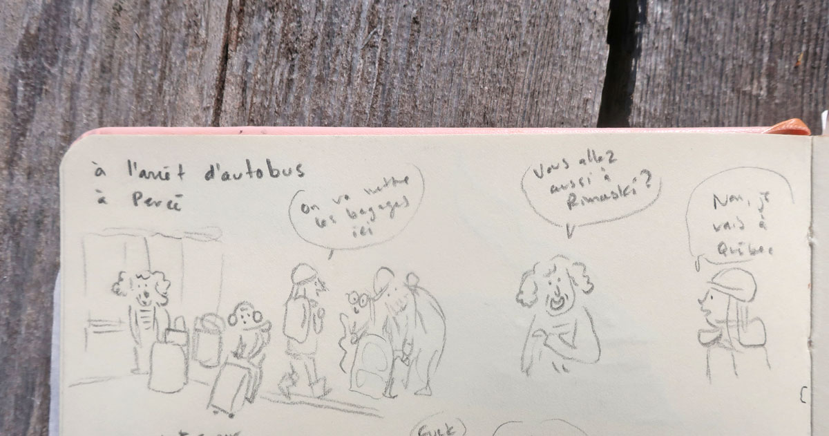 ACCENT RAVISSANT21 septembre (Pas tout à fait une BD de famille, mais une BD pareil) À l’arrêt d’autobus, à Percé(Pour aller à Québec, plus de 13h de route) Une conversation… Read More →