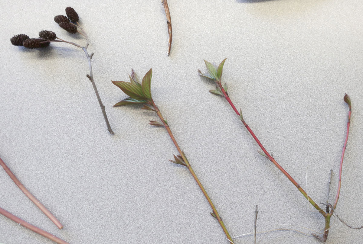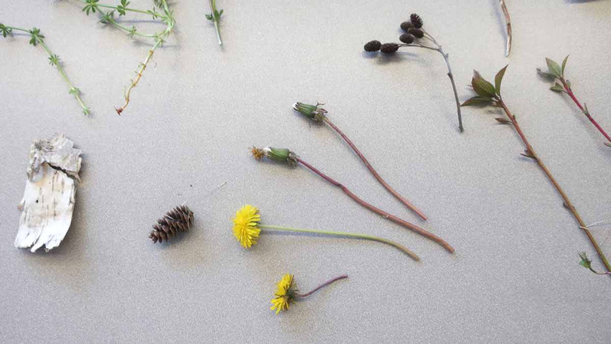 Ça peut être des feuilles, des branches, des fleurs de printemps ou séchées de la saison précédentes, des plantes, des cocottes, n’importe quoi.