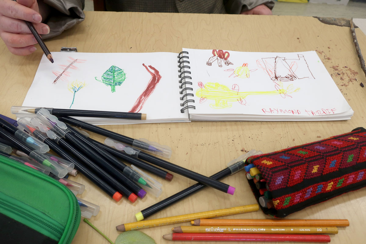 Comme je les visite souvent, et sur un temps plus long (2 ateliers de 2 heures, dans la même journée, plutôt qu’un atelier d’une heure une seule fois), je cherche toujours de nouvelles activités, à leur faire faire. Cette fois-ci, j’ai essayé quelque chose de nouveau. en lien avec ma pratique dans mes carnets.
