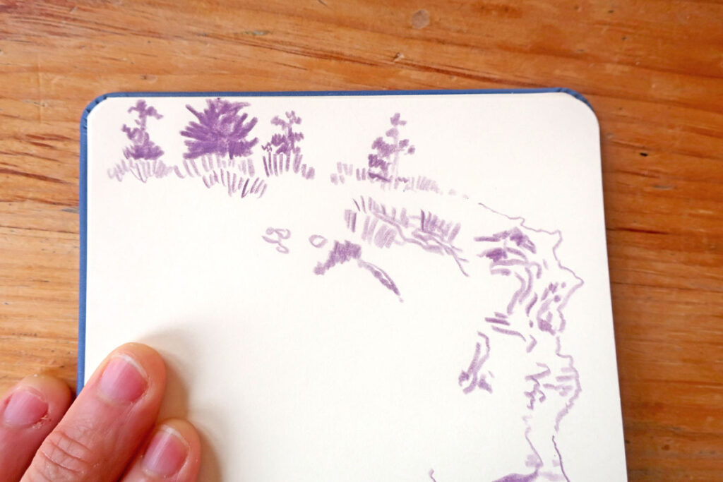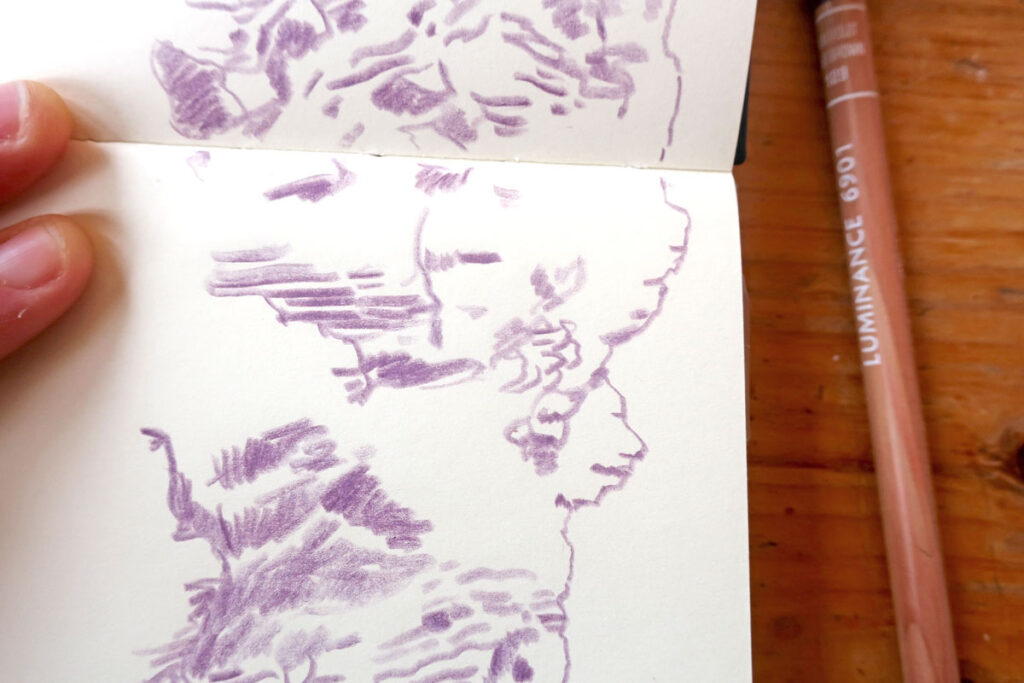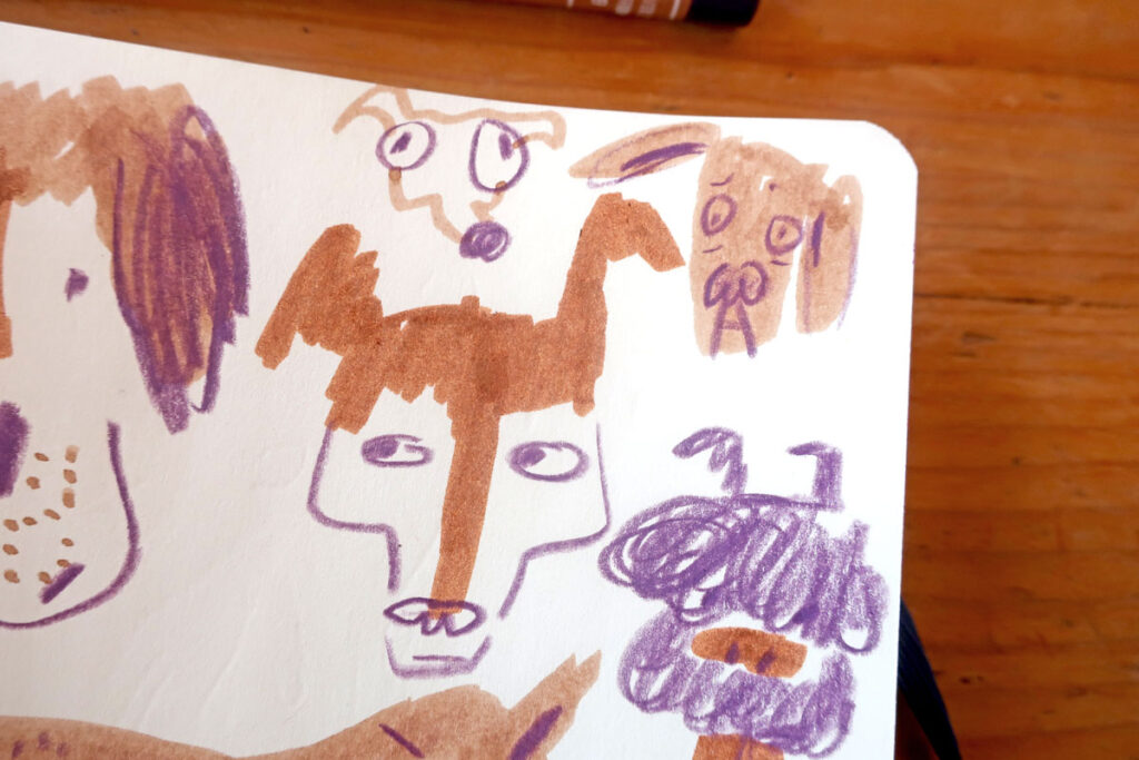 En couleurs restreintes (3) avec un crayon de couleur mauve foncé et 2 marqueurs de couleur beige et brun :)