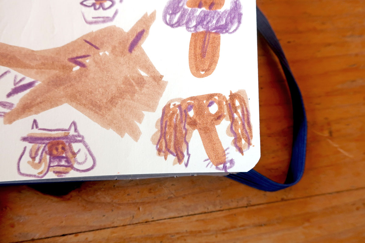 En couleurs restreintes (3) avec un crayon de couleur mauve foncé et 2 marqueurs de couleur beige et brun :)