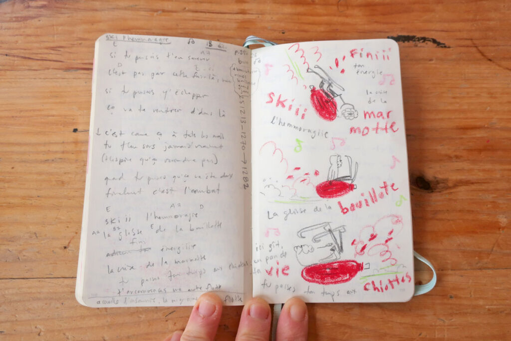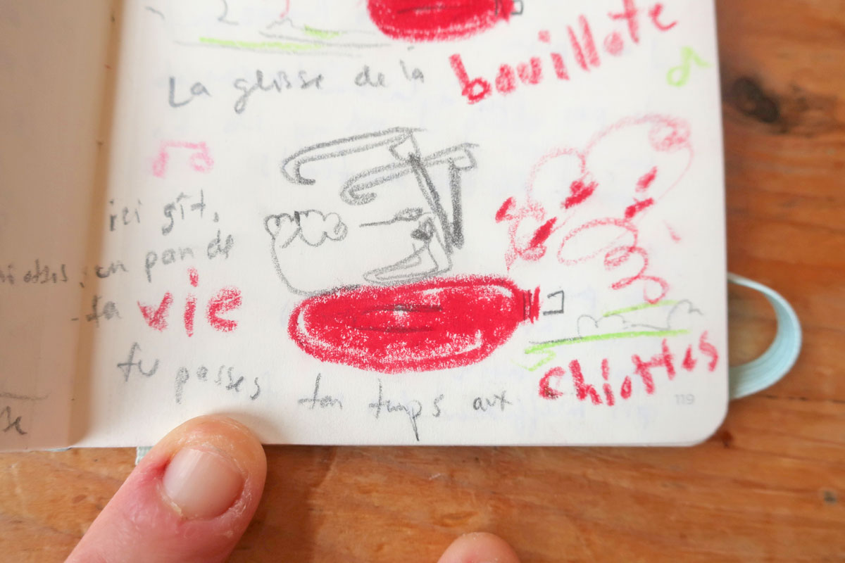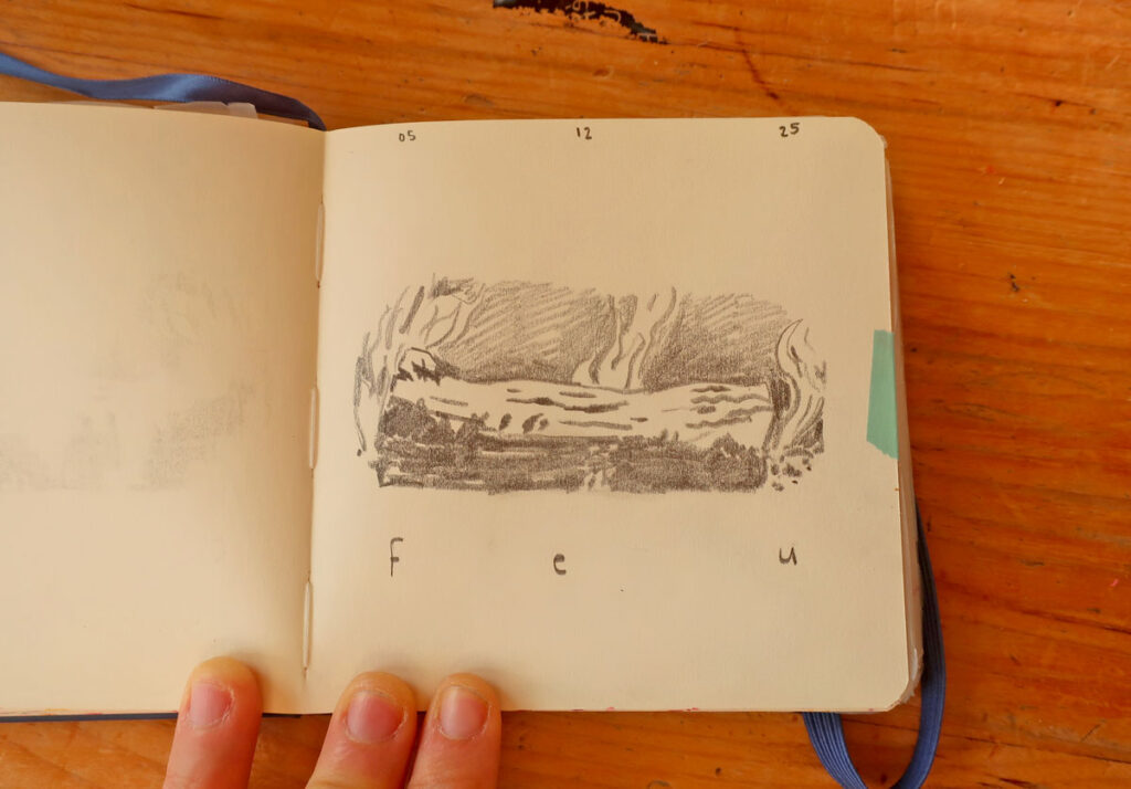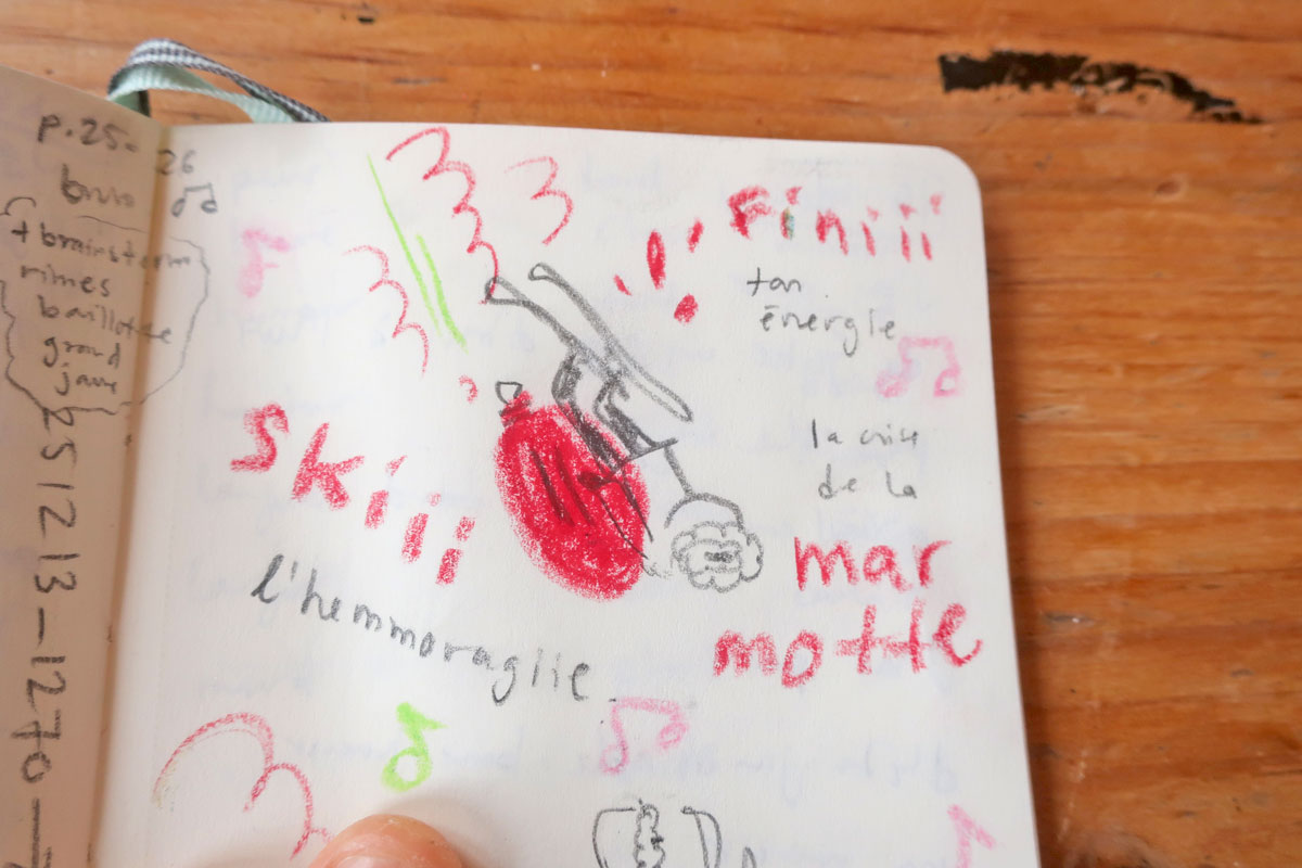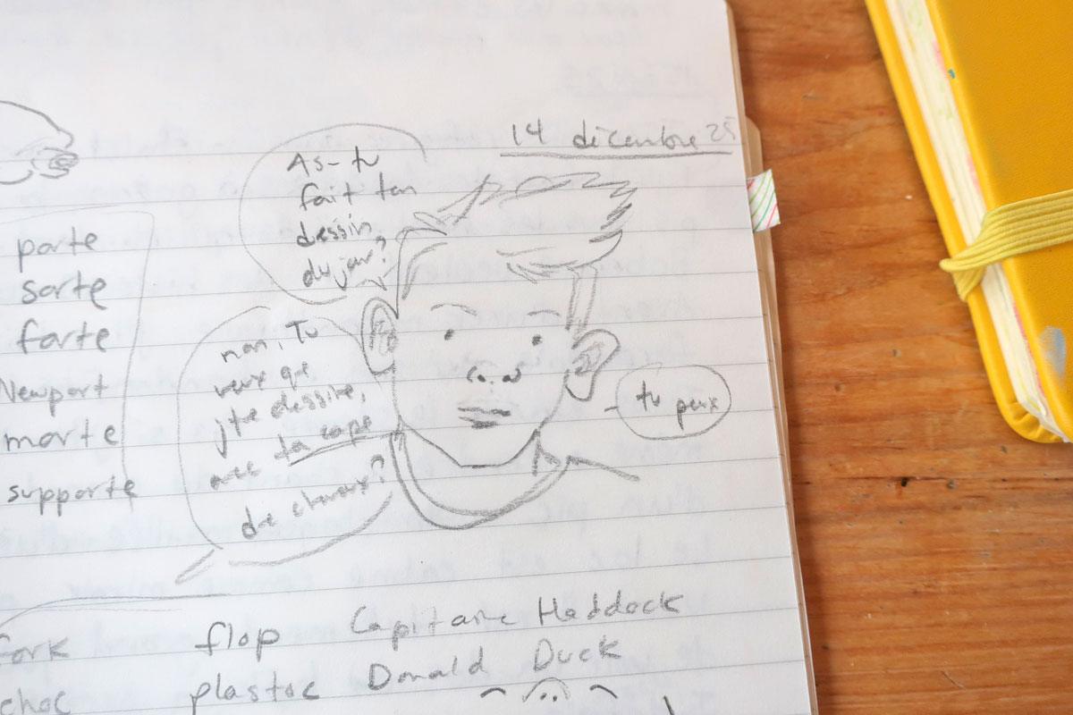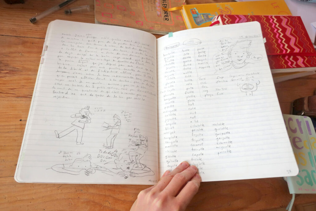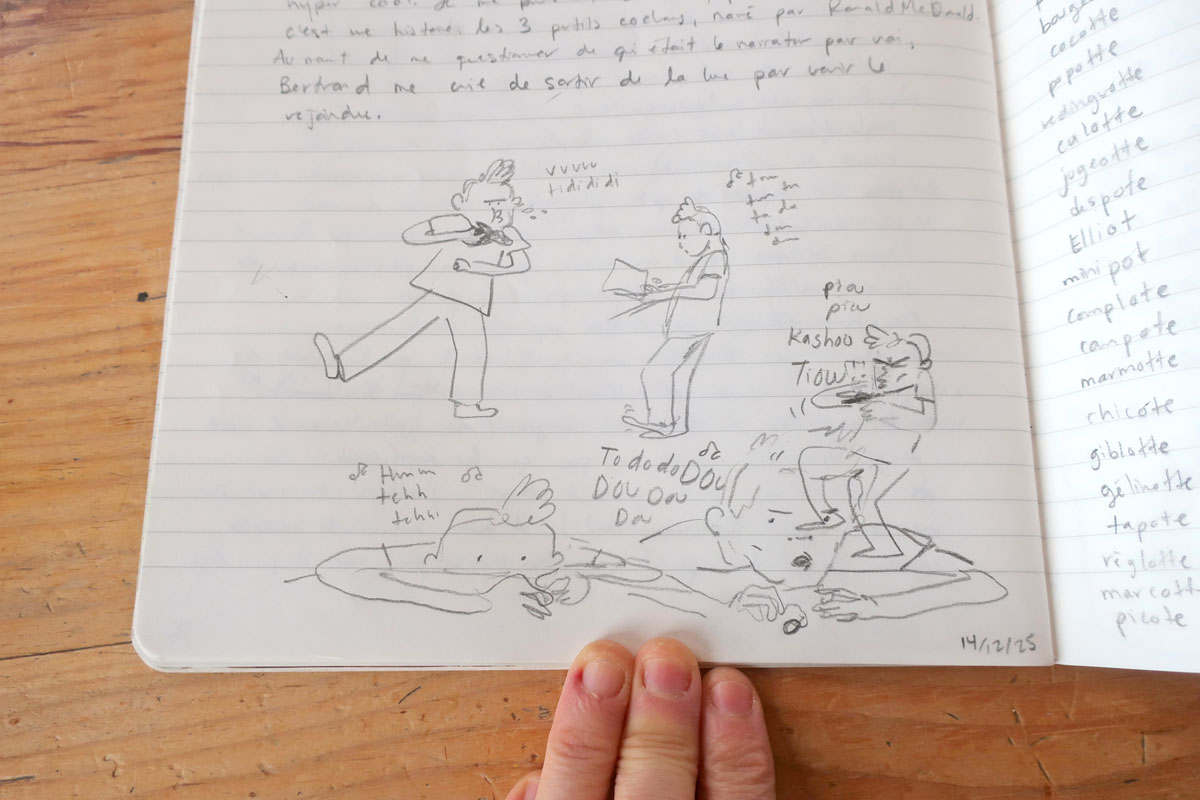 Et des fois, les carnets de dessin et d’écriture communiquent ensemble.