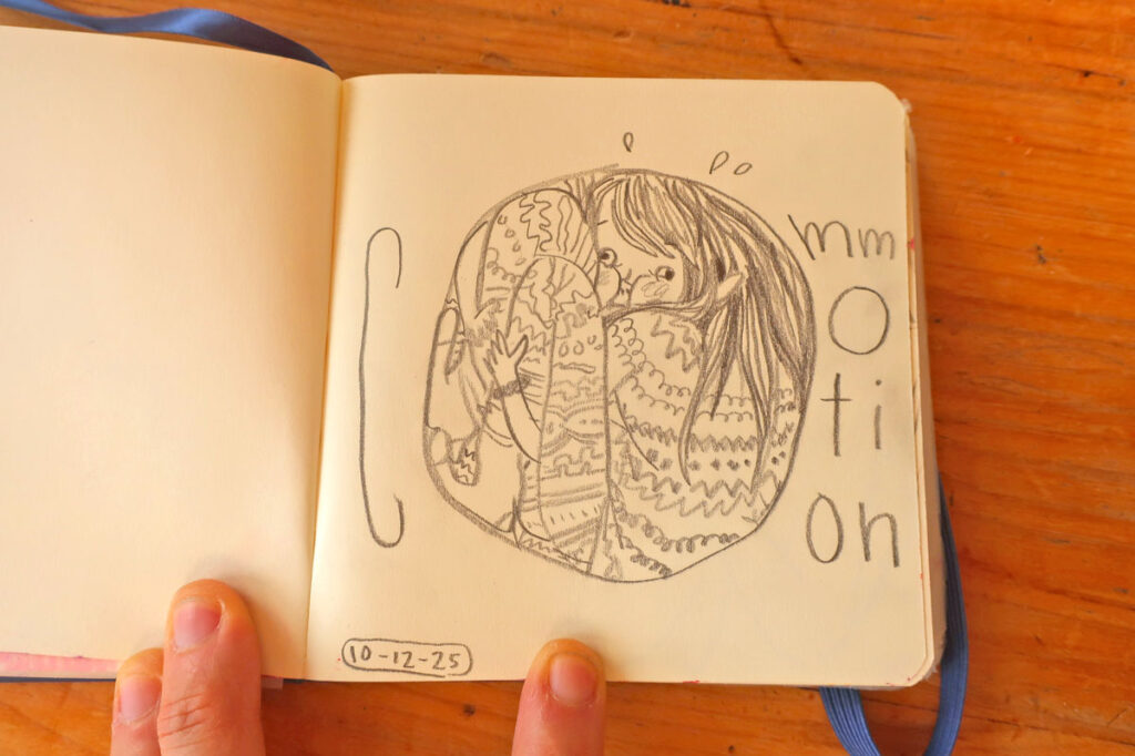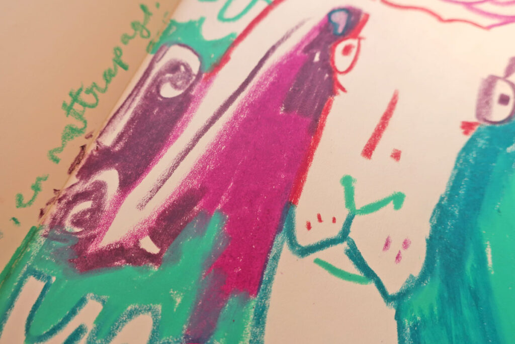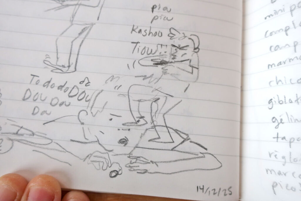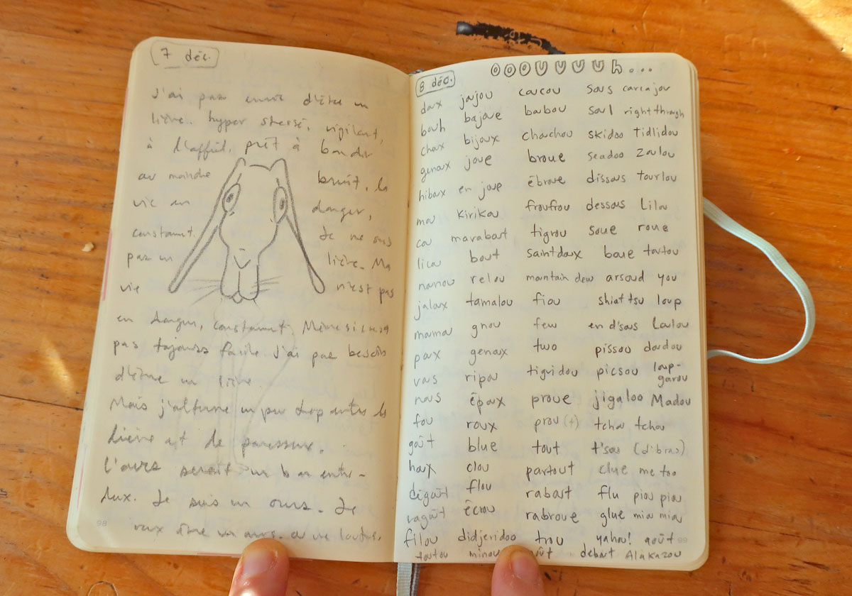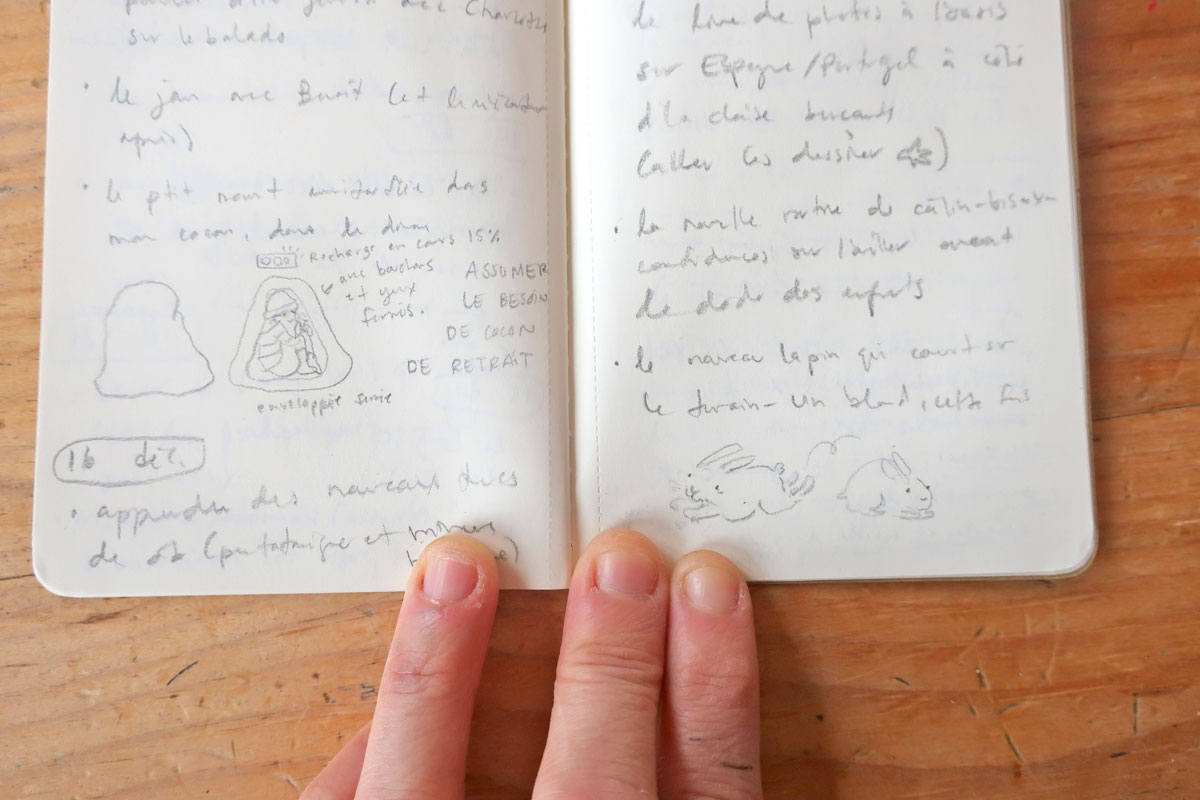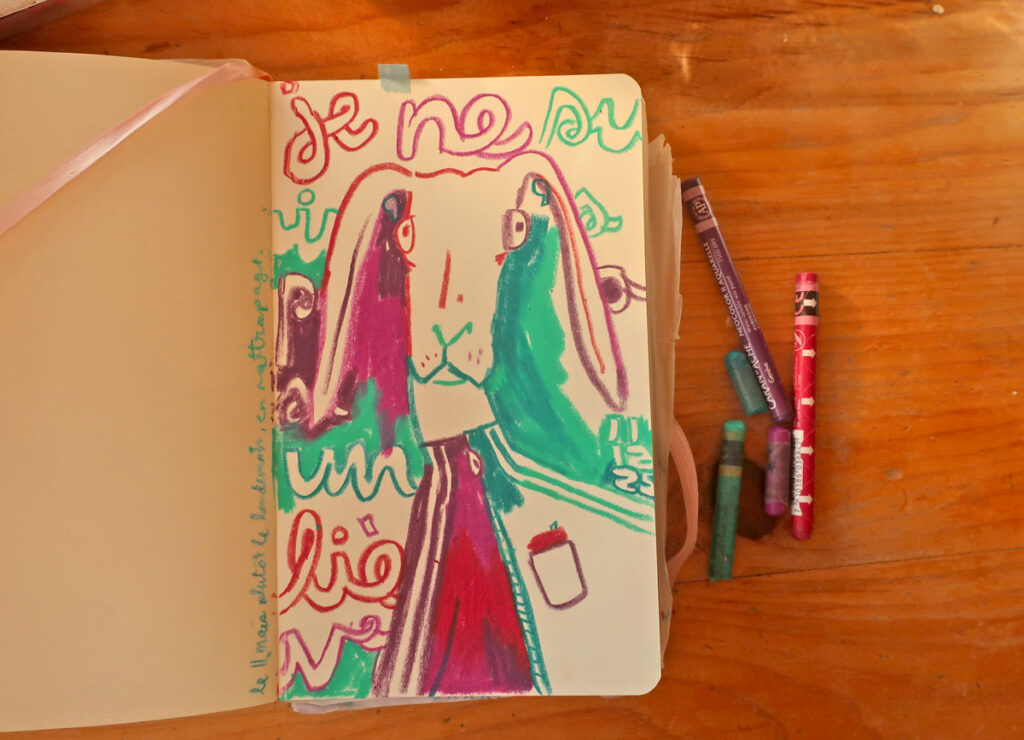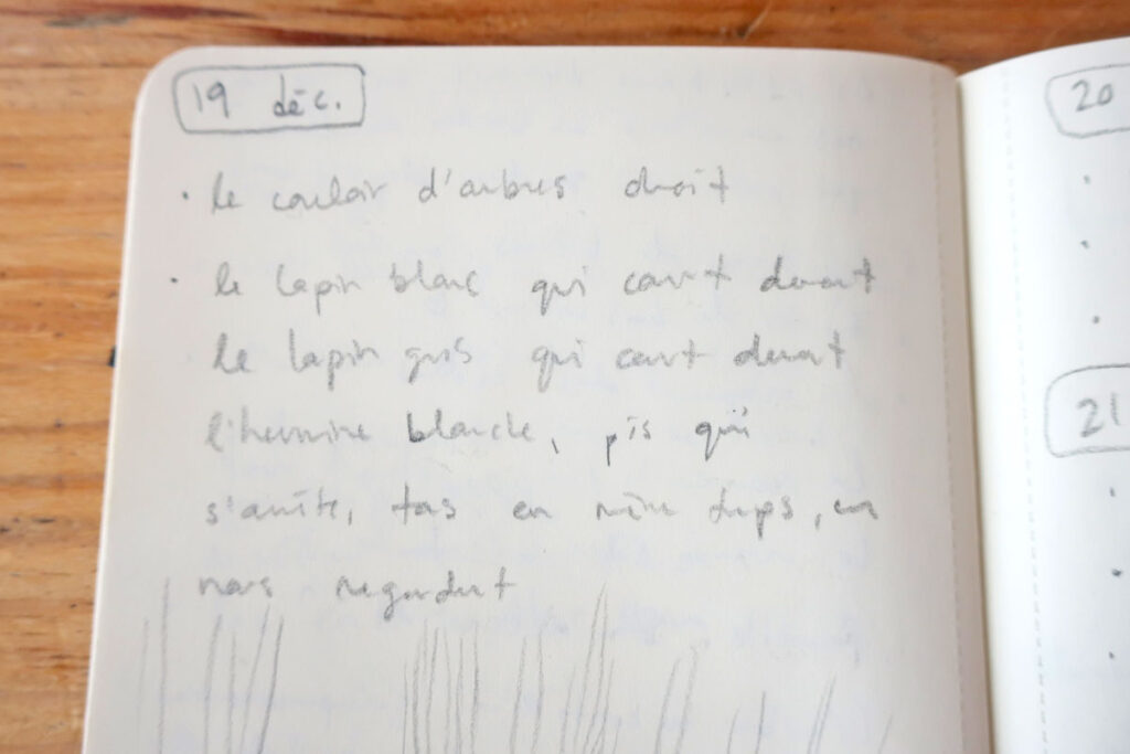 Et des fois, les carnets de dessin et d’écriture communiquent ensemble.