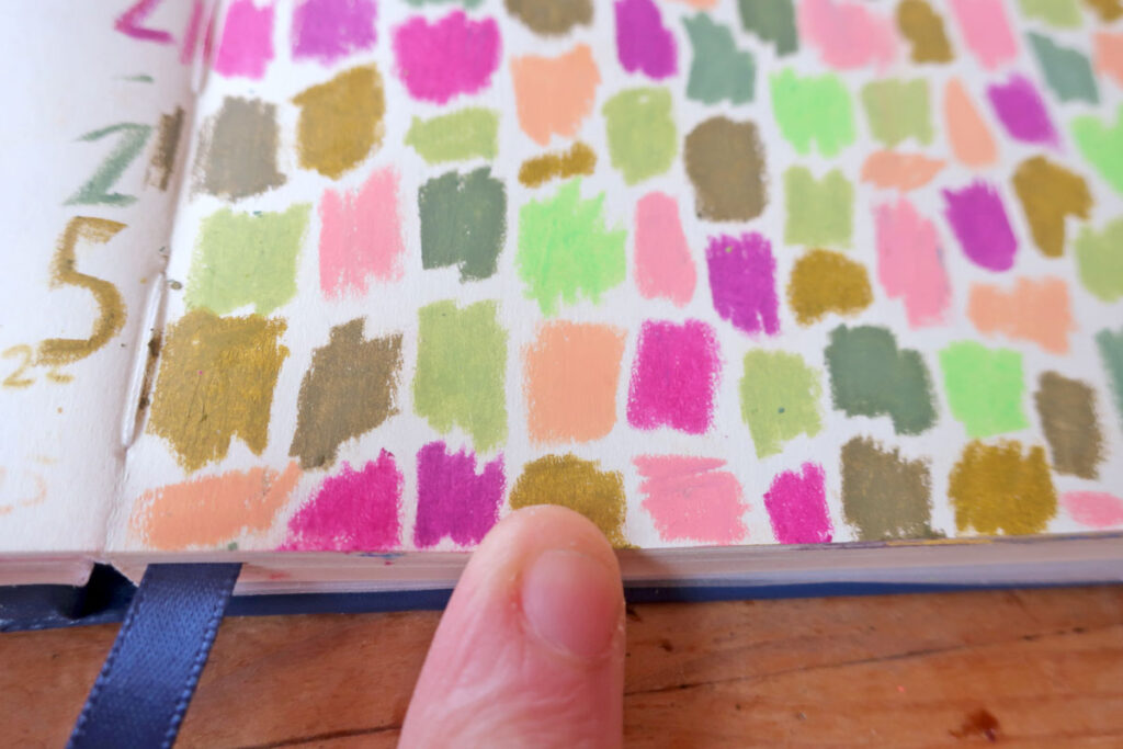 – plutôt que vert, j’ai pris des verts-jaune, des verts-kakis, des verts-gris.