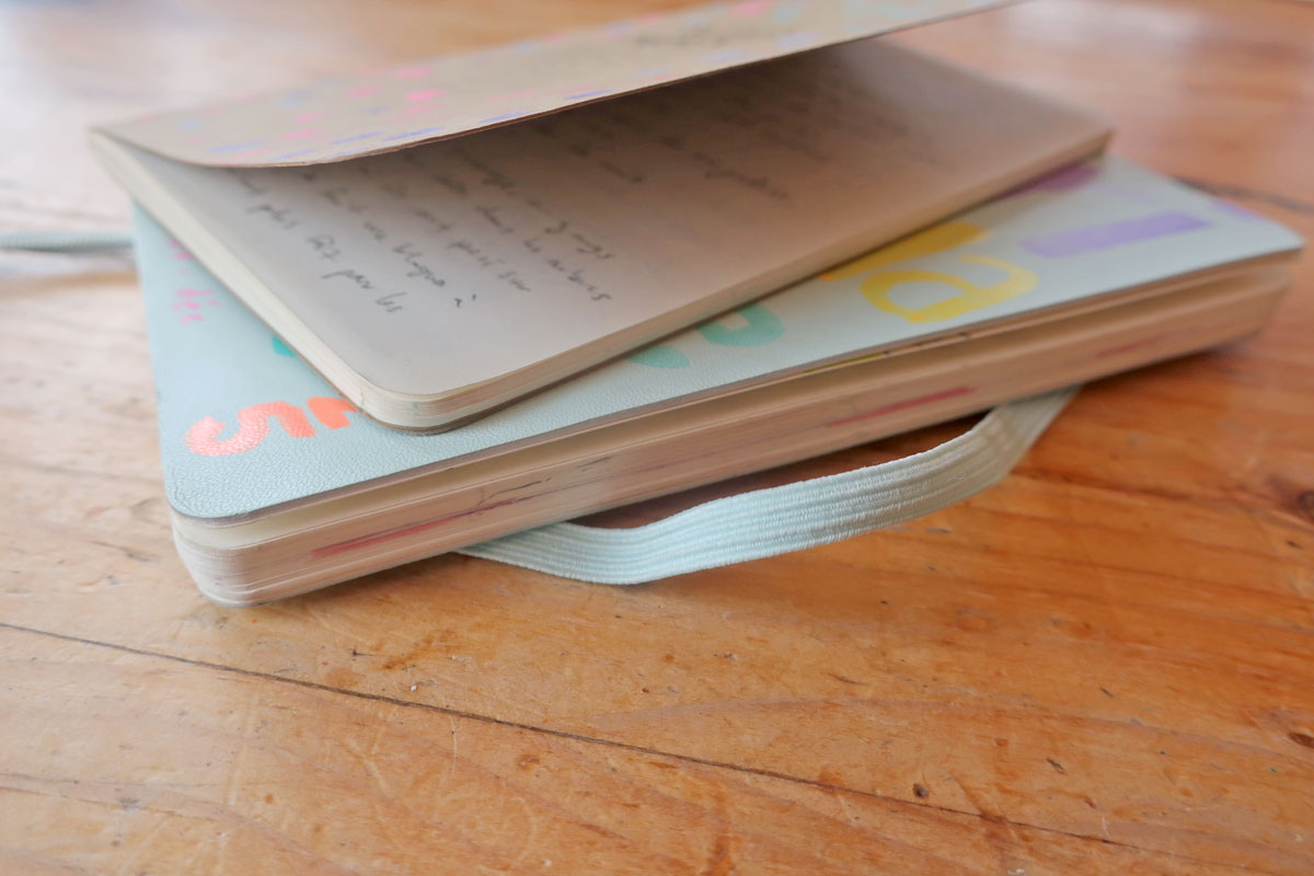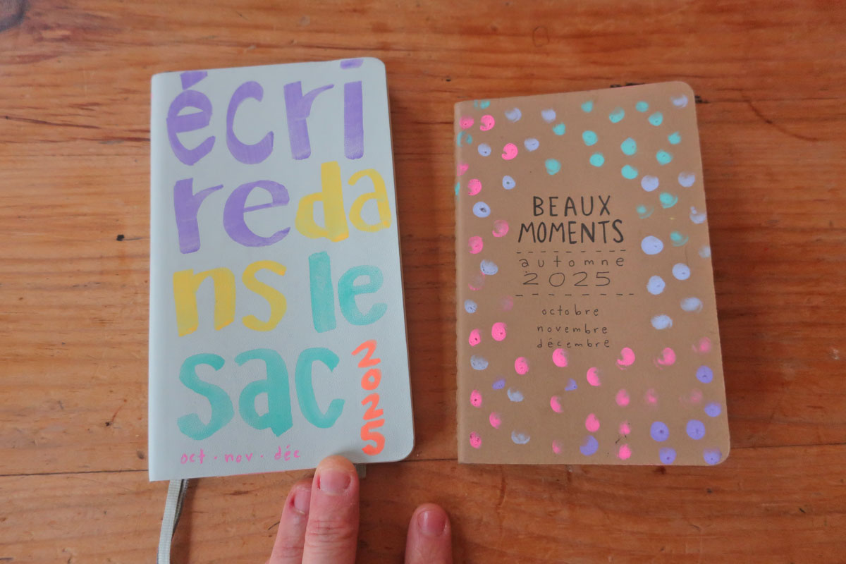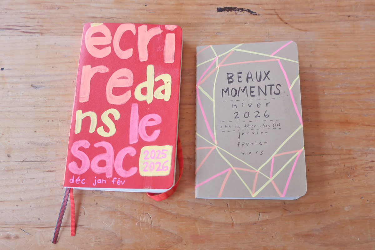 J’ai preeeesque fini mon carnet d’écriture de sac(oche) et mon carnet de beaux moments. Je suis toujours impressionnée comment ils sont « synchronisés ». (Je les finis souvent presqu’en même temps, alors qcomme s’ils voulaient pas se quitter)