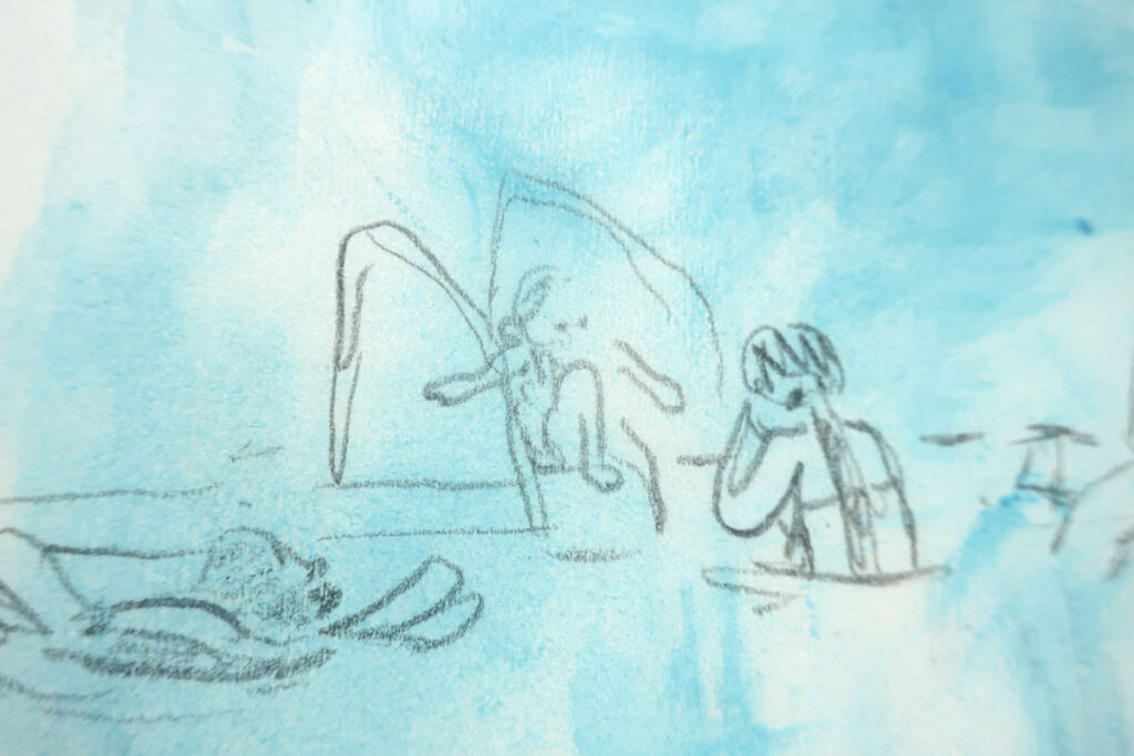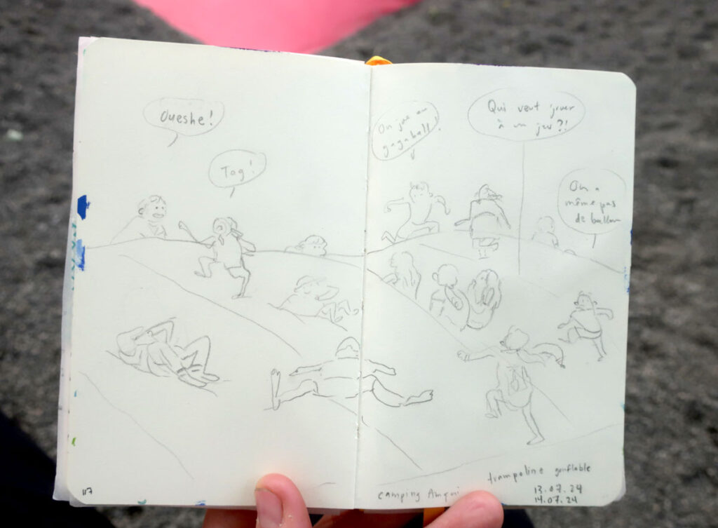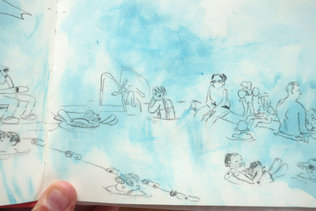 C’est un de mes dessins préféré de camping :D J’aime ça dessiner des sauveteuses, je l’avais fait l’an passé aussi, au même camping.