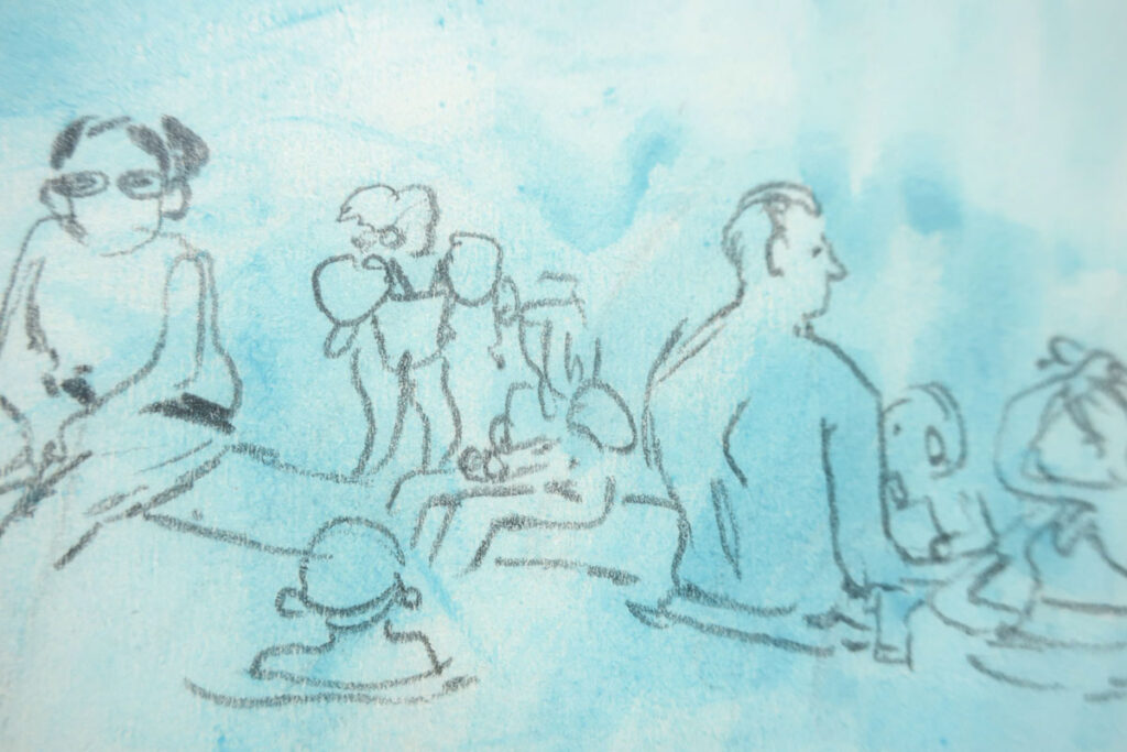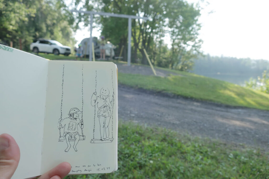 L’avant-midi file à toute allure et on jase de matériel de dessin, de carnets, de création, de nos kit de dessin léger de « sacoche » (super instructif, d’ailleurs).