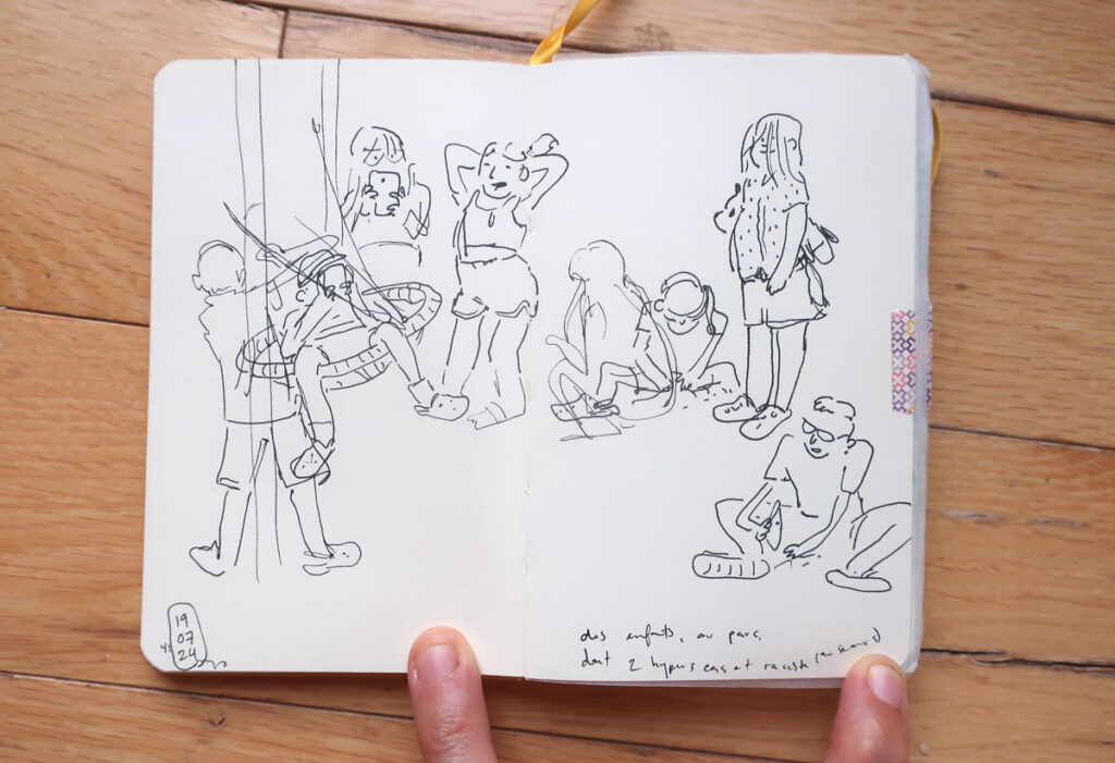 Je me rappelle que mon carnet est un lieu d’essais, d’erreurs et d’explorations. Pas un endroit réservé aux beaux dessins réussis.