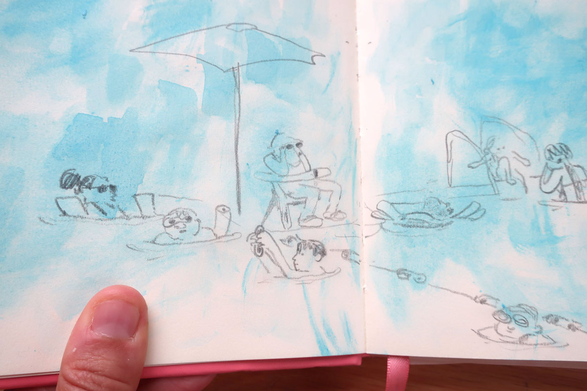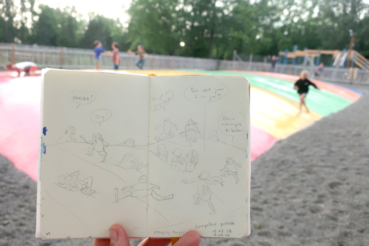 C’est un de mes dessins préféré de camping :D J’aime ça dessiner des sauveteuses, je l’avais fait l’an passé aussi, au même camping.