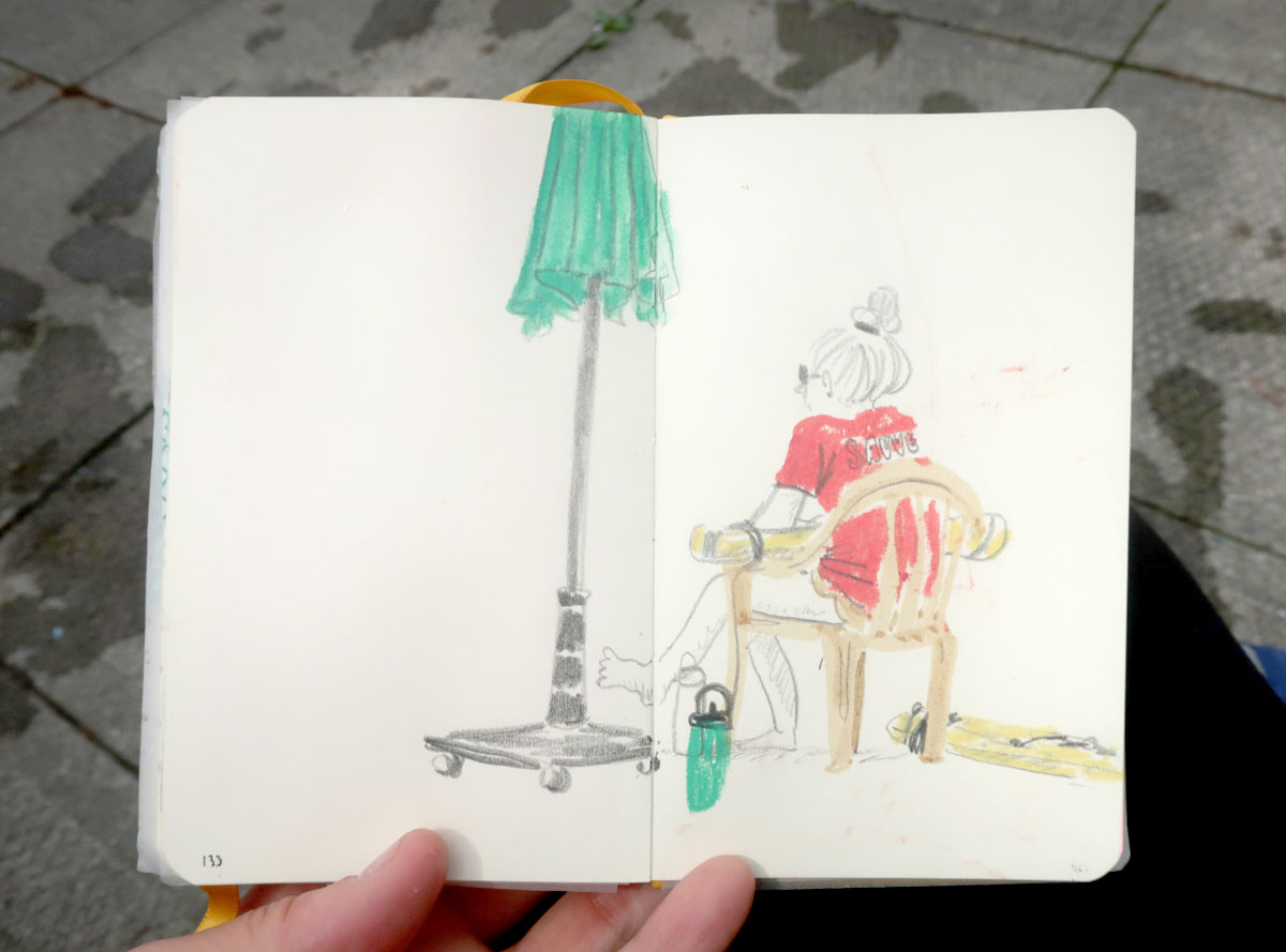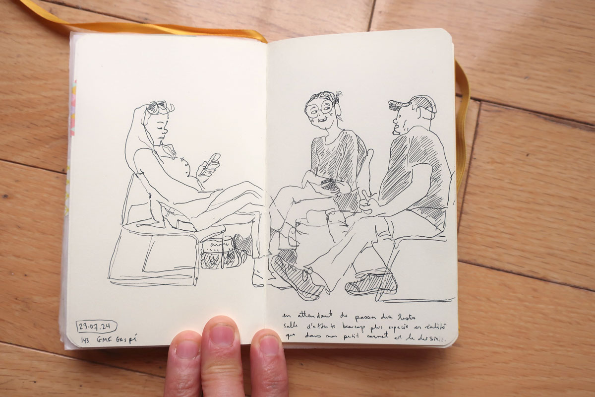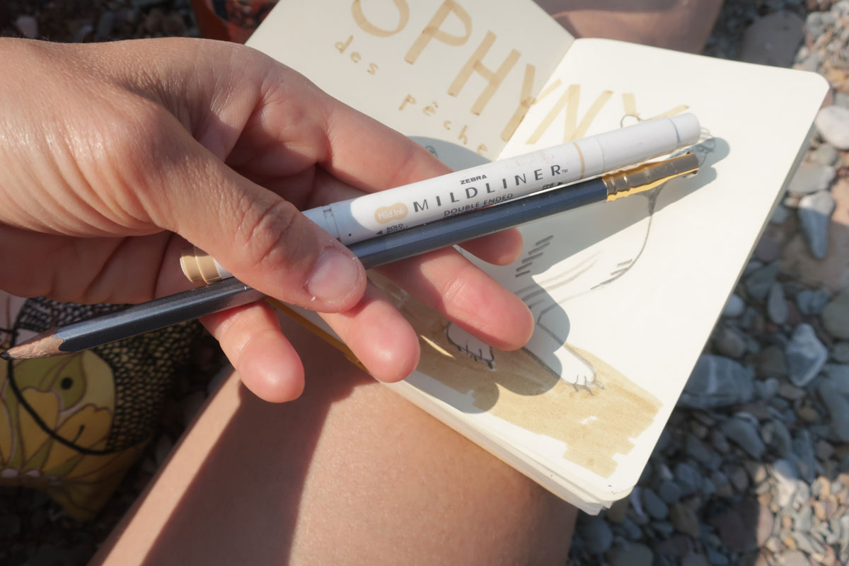L’avant-midi file à toute allure et on jase de matériel de dessin, de carnets, de création, de nos kit de dessin léger de « sacoche » (super instructif, d’ailleurs).