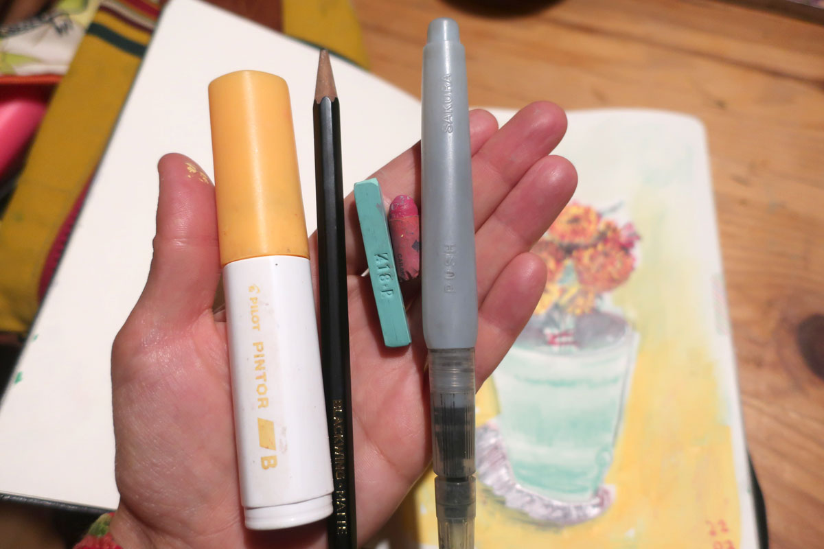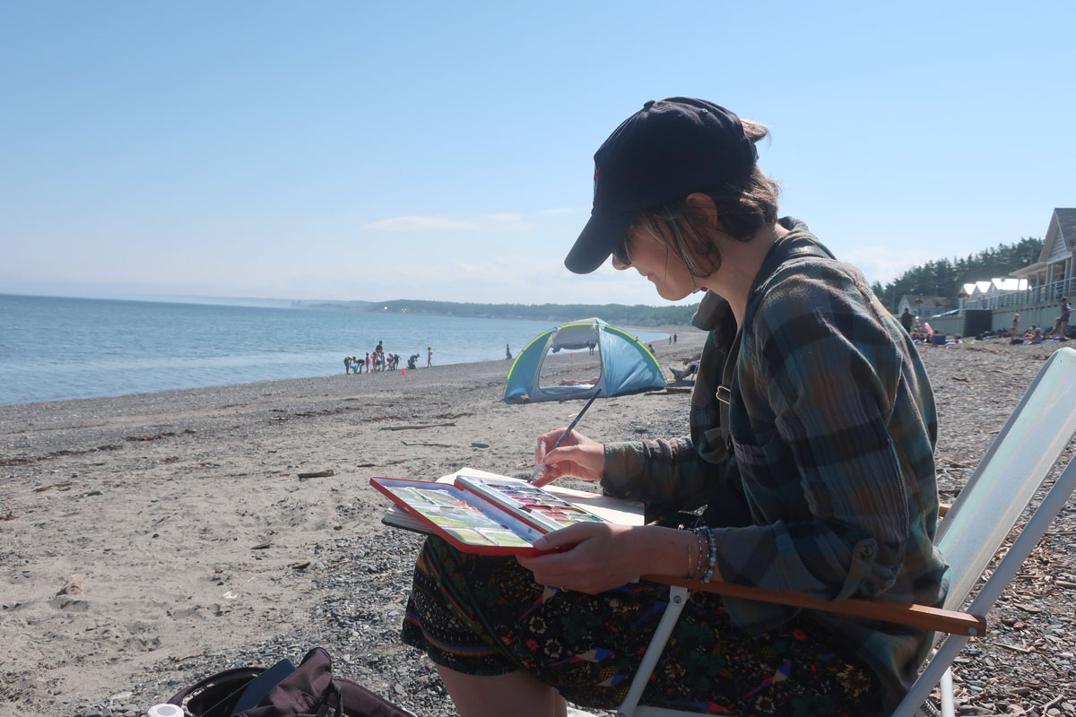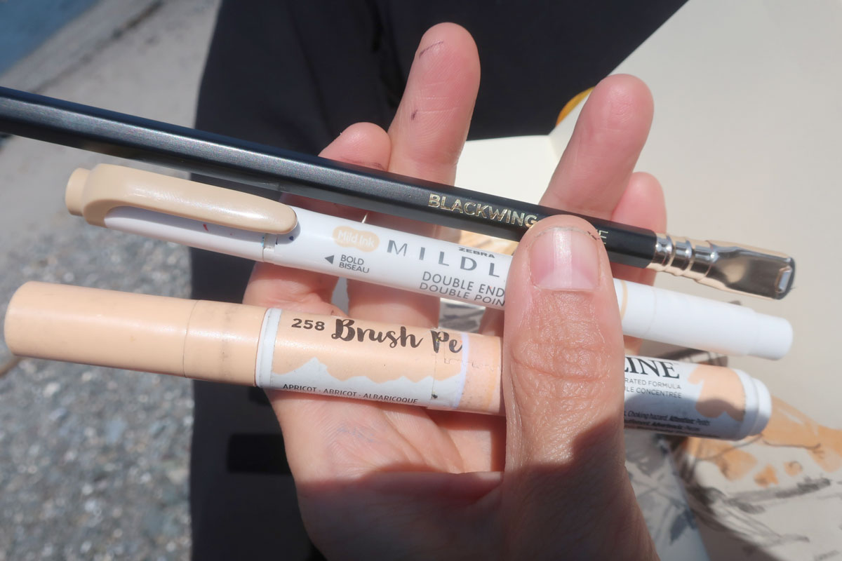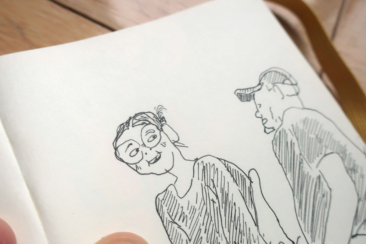 L’avant-midi file à toute allure et on jase de matériel de dessin, de carnets, de création, de nos kit de dessin léger de « sacoche » (super instructif, d’ailleurs).