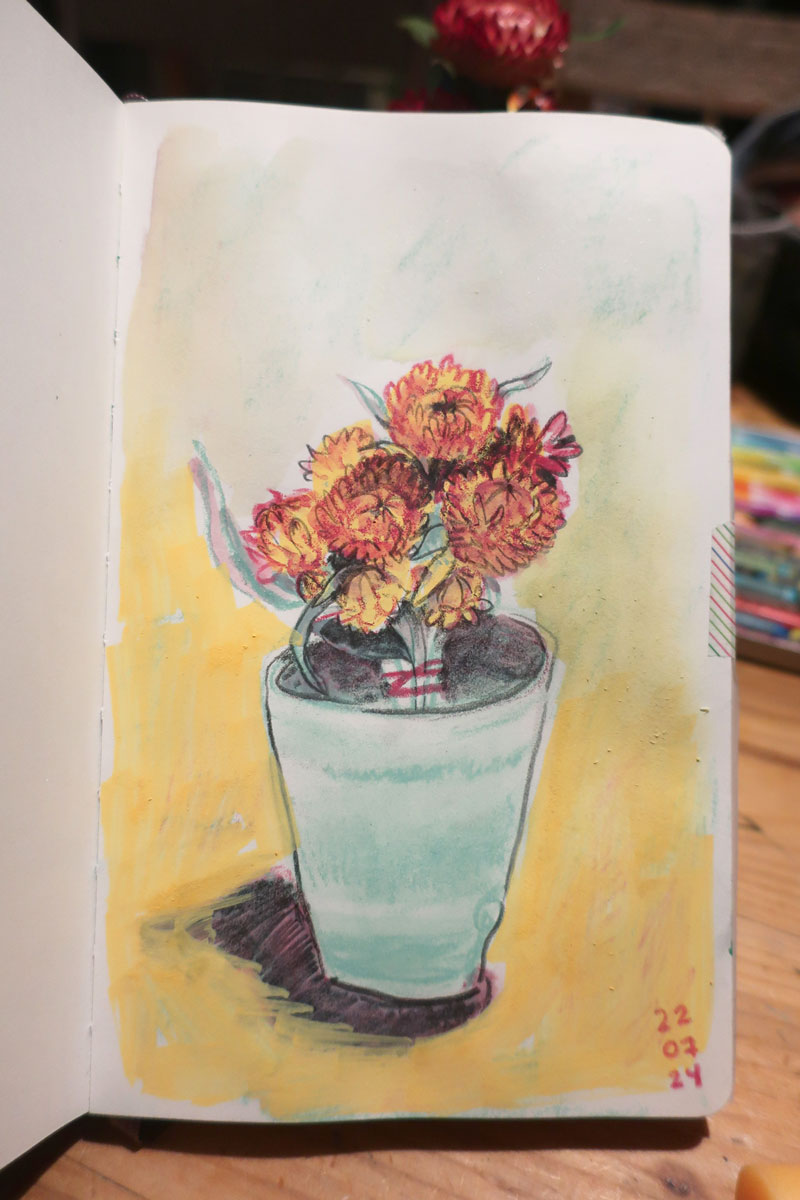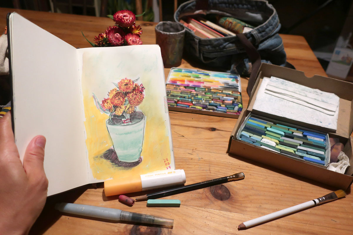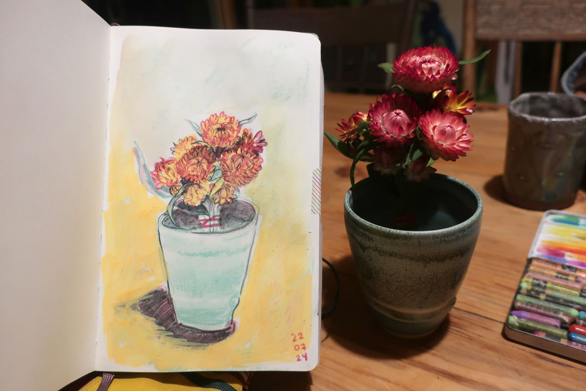 Je me rappelle que mon carnet est un lieu d’essais, d’erreurs et d’explorations. Pas un endroit réservé aux beaux dessins réussis.