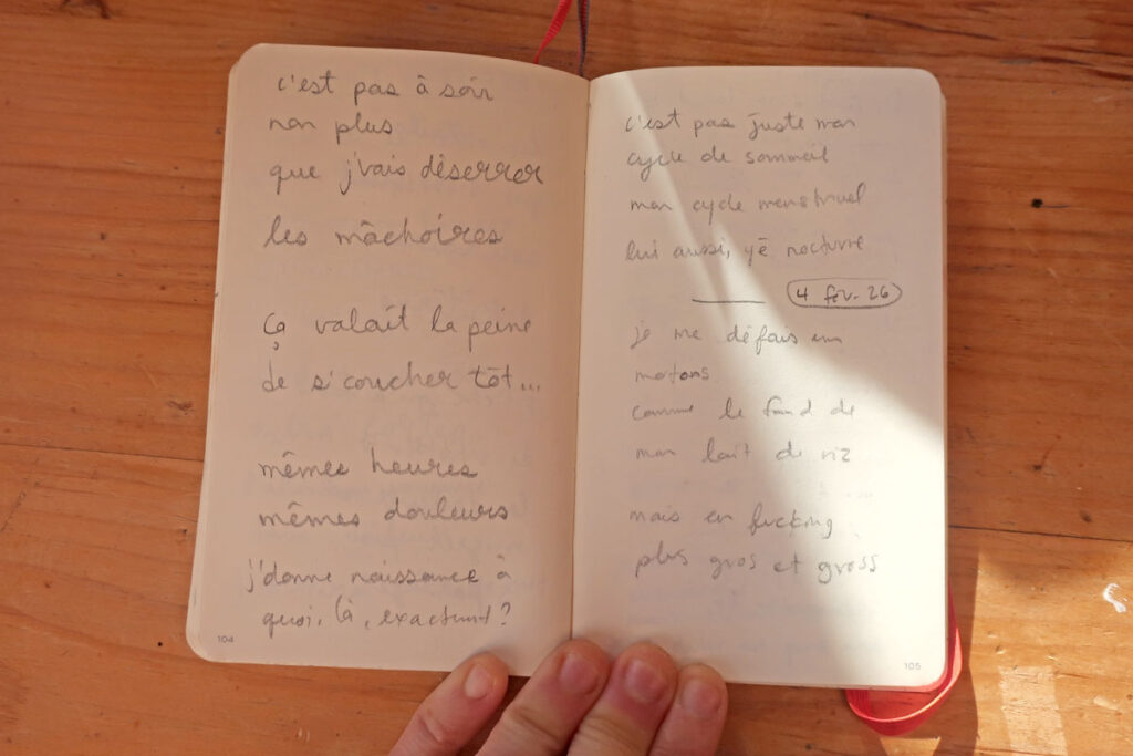 Je vais plutôt me replonger dans mes carnets d’écriture et de musique et essayer de faire de quoi avec tout ça.