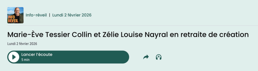 mais aussi aux magnifiques textes et projets des autres artistes; France Cayouette, Suzie Larivée, d’Emma Desgens, de Marie-Eve Bégin, de J Zaolie Tessier, d’Émilie Devoe, de Sophie Gemme, de Line Richard, de Joanne Morency, de Claire Moeder, de Priscilla Guy et, bientôt, de Rachel Leclerc.