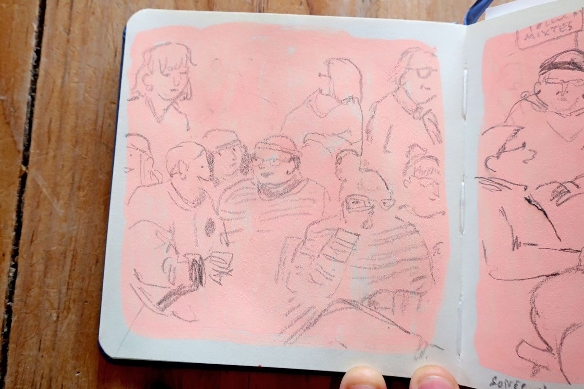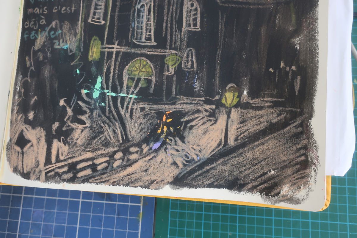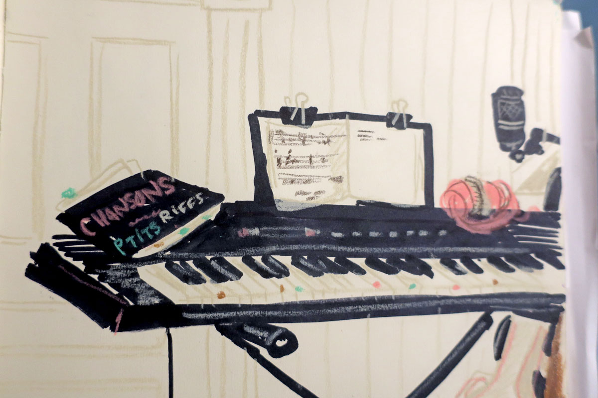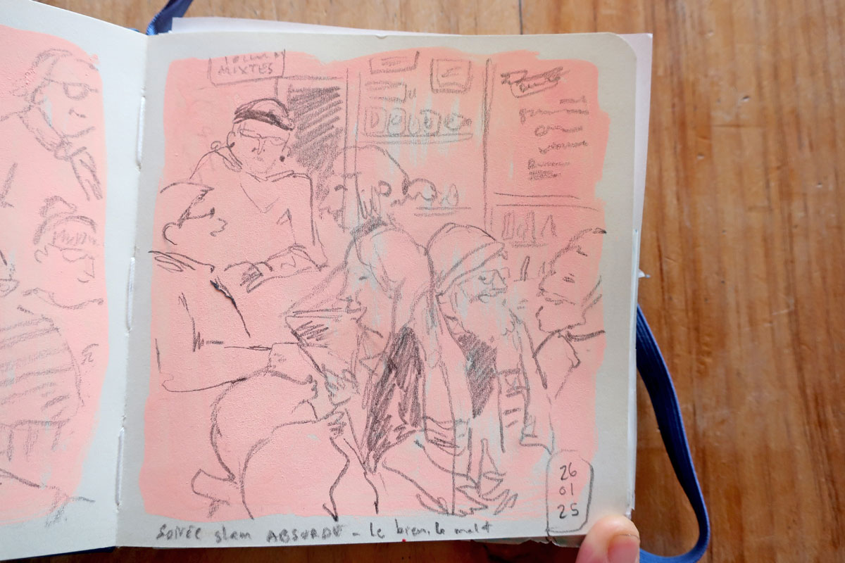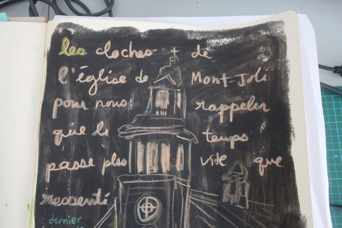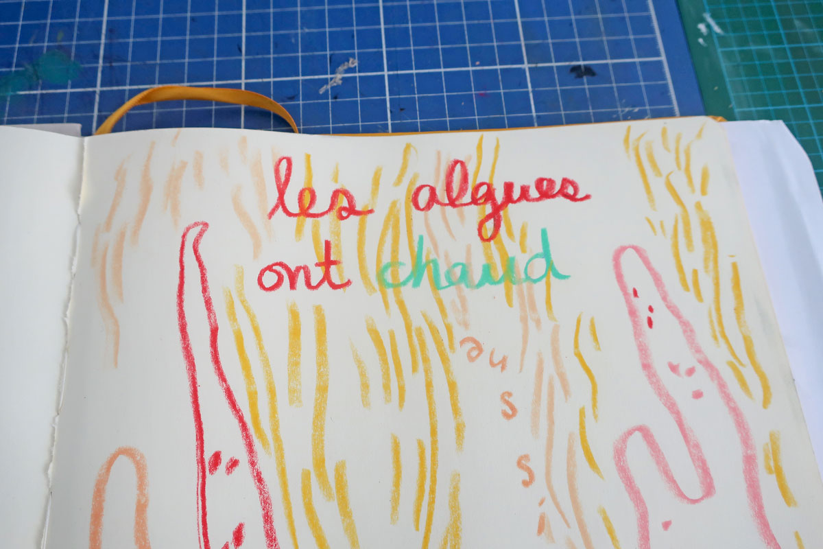 Au menu : Deuils de résidence de création, un coin musique, des algues, un slam, un damier abricot, de l’impro avec de la gouache, un beau projet, une entrevue et une église de nuit.