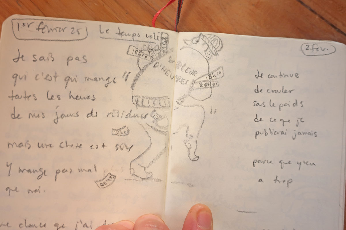 Je vais plutôt me replonger dans mes carnets d’écriture et de musique et essayer de faire de quoi avec tout ça.